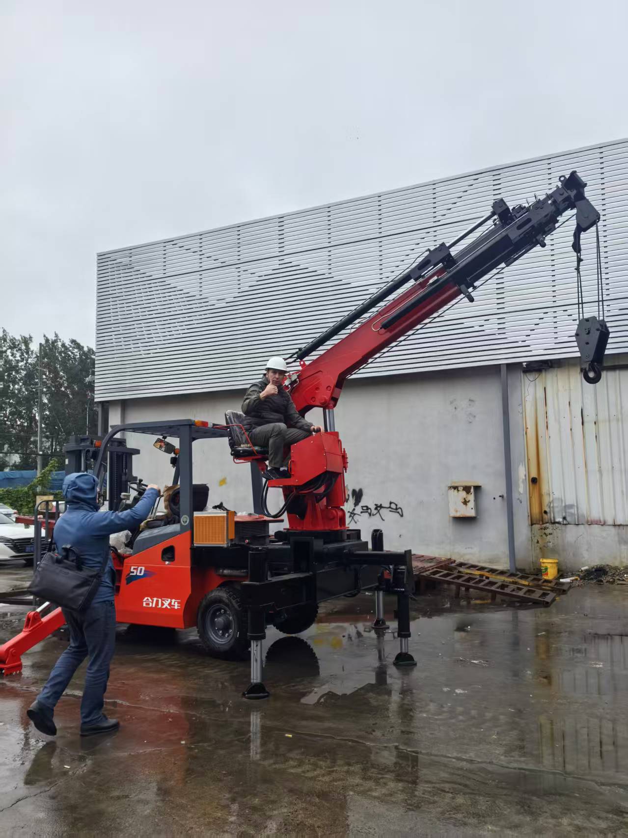 俄羅斯客戶親自測試星志重工吊裝機(jī)械-叉車尾吊后,伸出大拇指,給予充分的肯定、認(rèn)可。還說出了:“星志重工,值得信賴!”