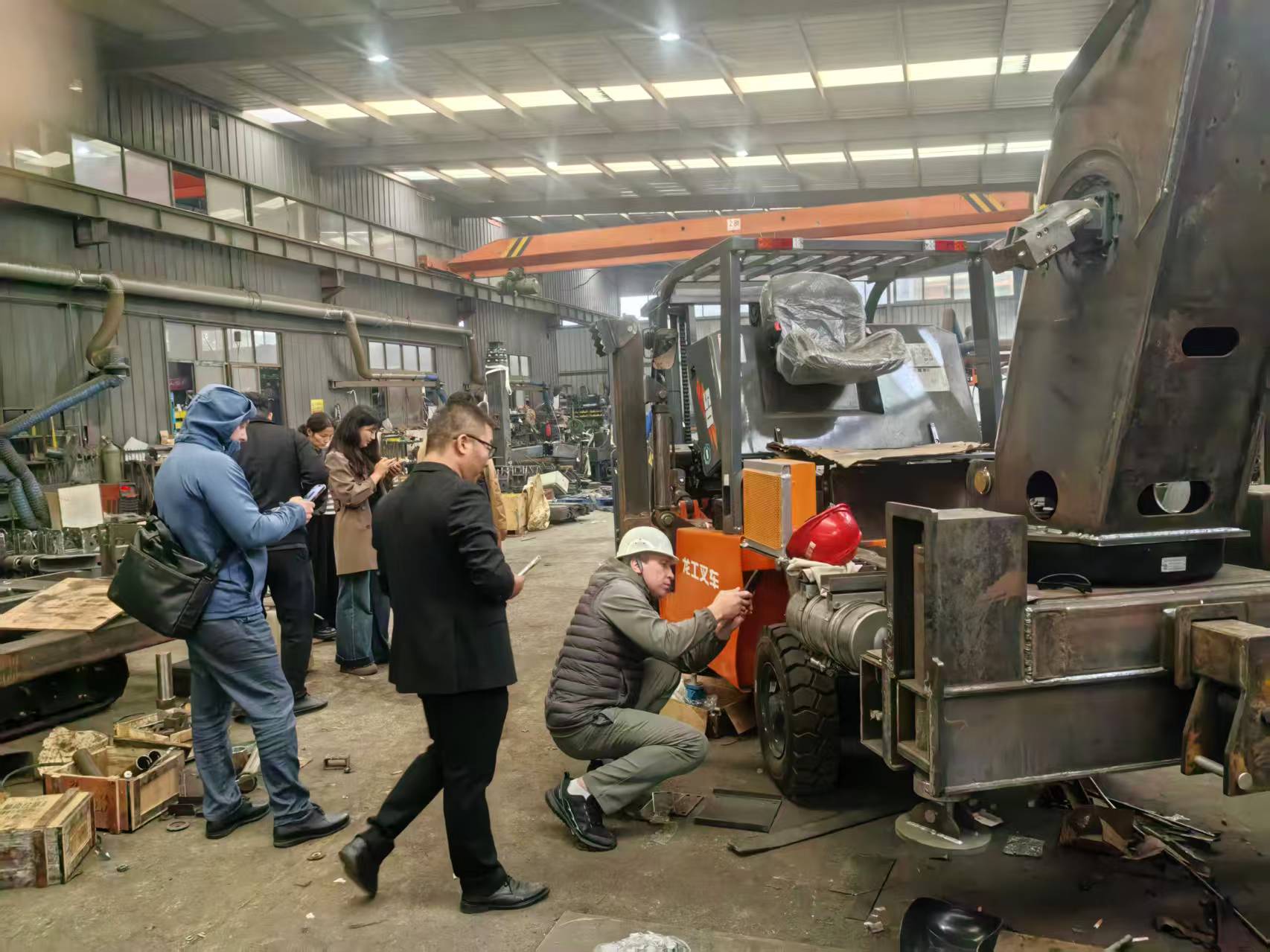 (俄羅斯客戶在星志重工生產(chǎn)車間實(shí)地考察,對星志品牌吊機(jī)產(chǎn)生濃厚的興趣)